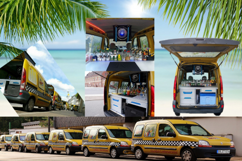 Der Kunde bestellt seine Cocktails online und innerhalb kurzer Zeit steht eines der derzeit sechs Cocktail-Taxis vor der Tür. Die Fahrzeuge sind mit allem Notwendigen ausgestattet und die Drinks werden vor Ort beim Kunden gemixt.