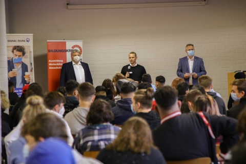„Der Schritt von der Schule in den Beruf ist eine wichtige Entscheidung im Leben”, erläuterte Hauptgeschäftsführer Joachim Susewind die Beweggründe für die Aktion. „Es gibt im Handwerk rund 130 verschiedene Berufe, beste berufliche Chancen und gute Nachwuchskräfte werden dringend gesucht. Wir würden uns freuen, wenn dieser Tag für den einen oder anderen zum Beginn einer beruflichen Karriere in den Mitgliedsbetrieben unserer 22 Innungen werden könnte.” Das ist auch ein Anliegen der Wirtschaftsförderung Dortmund, die vor Ort von Geschäftsbereichsleiter Friedrich-Wilhelm Corzilius vertreten wurde. „Das Handwerk ist in unserer Region mit rund 4.800 Betrieben eine starke Wirtschaftsmacht”, beschreibt er die Gründe der Wirtschaftsförderung für den Aktionstag „Ausbildung im Quartier – Dein Tag im Handwerk.” „Wir wollen mit unserer Beteiligung diesen wichtigen konjunkturellen Eckpfeiler, der sich auch in der Corona-Pandemie bisher als ausgesprochen krisensicher gezeigt hat, durch gezielte Nachwuchswerbung weiter stärken.”