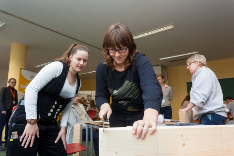 Kann ich mir einen Beruf vorstellen, in dem ich viel mit anderen Menschen zu tun habe – wie Altenpfleger/in und Frisör/in oder passt doch die Arbeit mit Holz und auf Dächern als Zimmerer mehr zu meinen Fähigkeiten? Diese und weitere drei Berufe konnten gestern die Schüler/innen der 8. Klasse der Reinoldi-Sekundarschule bei einem jobtec.training austesten.